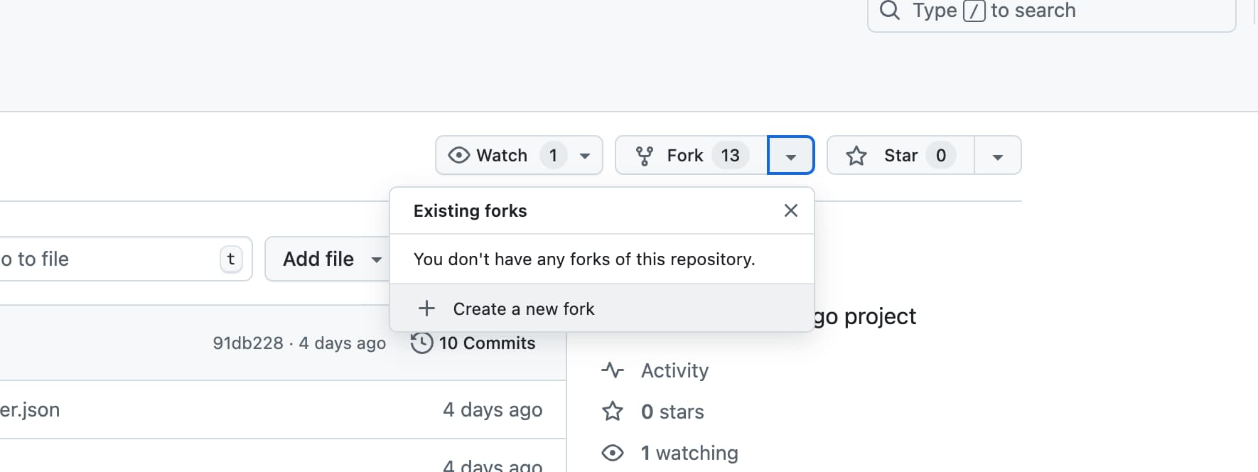 Click the ‘Fork’ button in the top right corner of the repository page and select