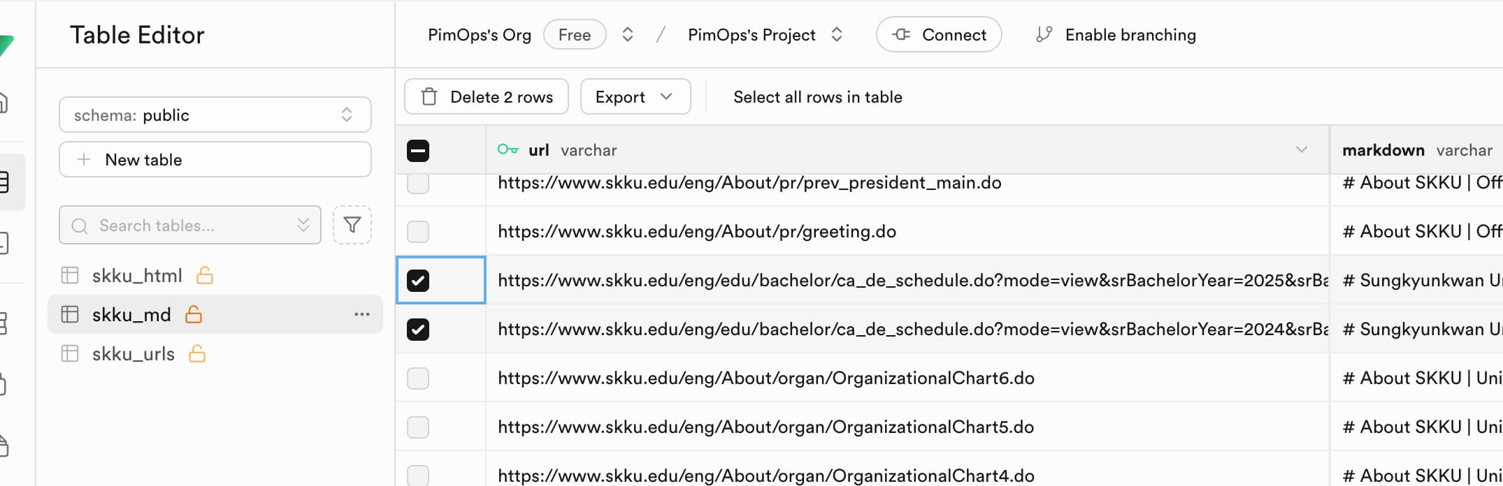 Run the url_loader.py script to update the skku_urls table with the latest urls.